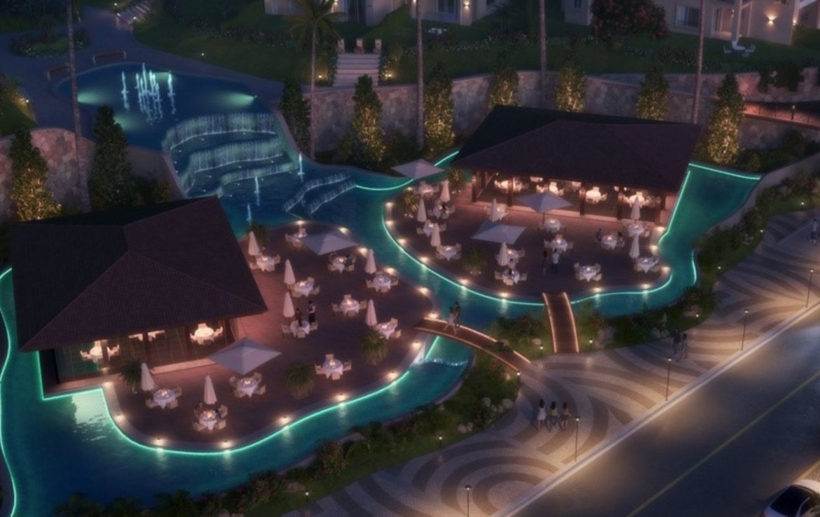 تشغل المباني مساحة 18٪ من المساحة الكلية وباقي المساحة مساحات خضراء وكريستال لاجونز