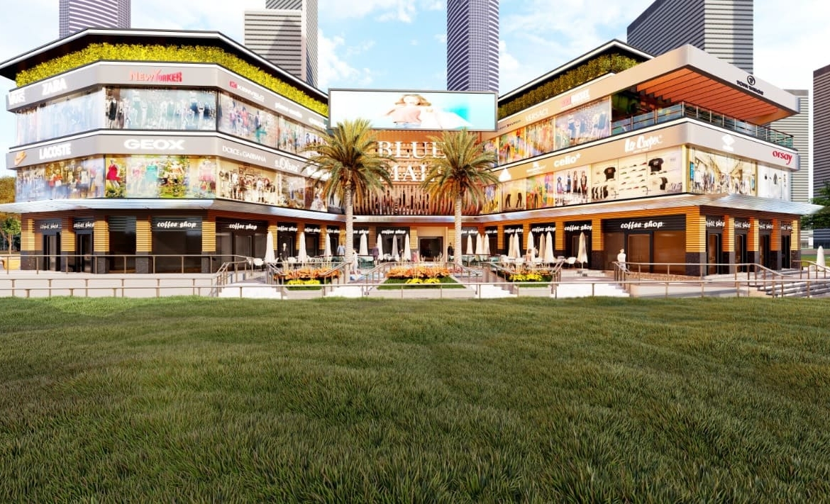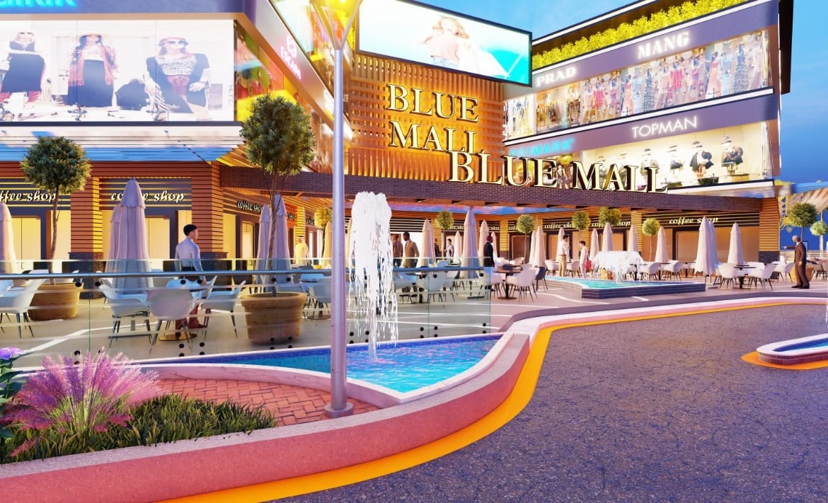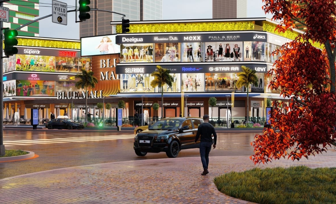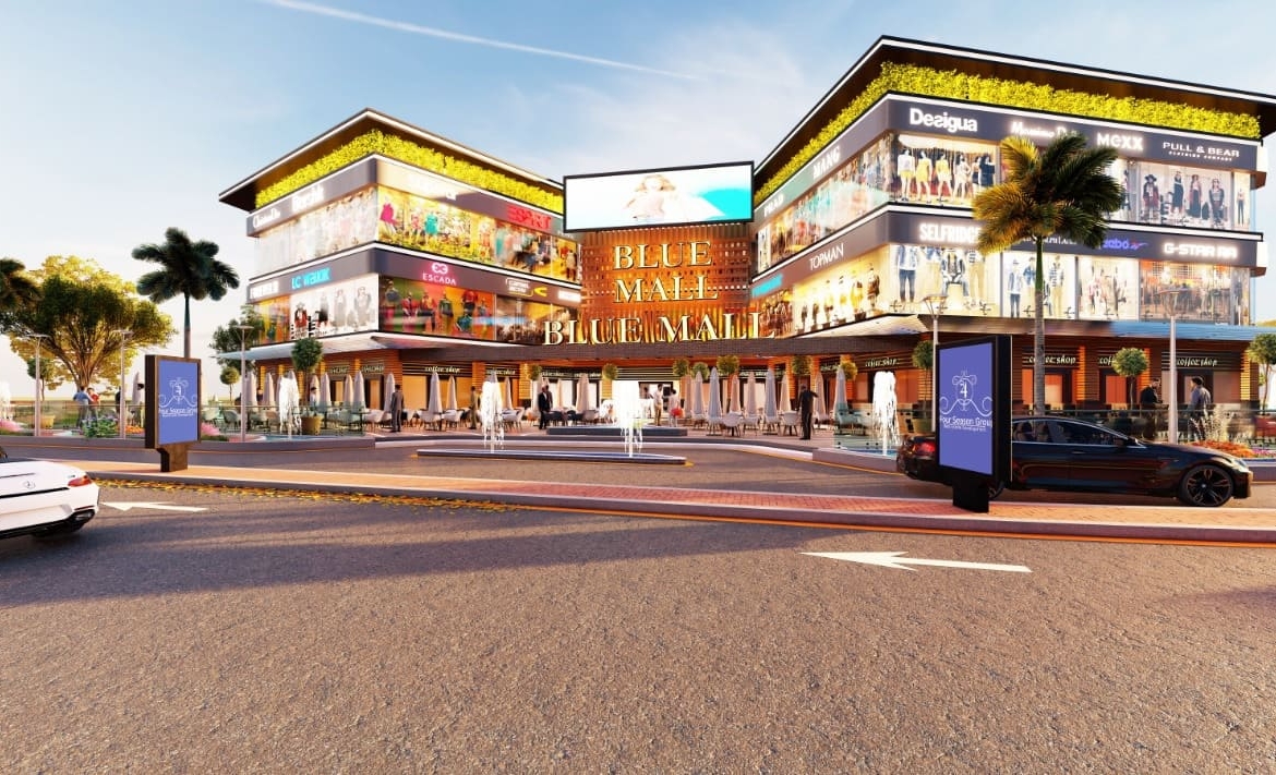 Blue Mall is located in the heart of the residential area R7, which is the largest residential area in the administrative capital, as it contains a large group of residential compounds and universities (the British University, the Russian Community, and the Swedish University).