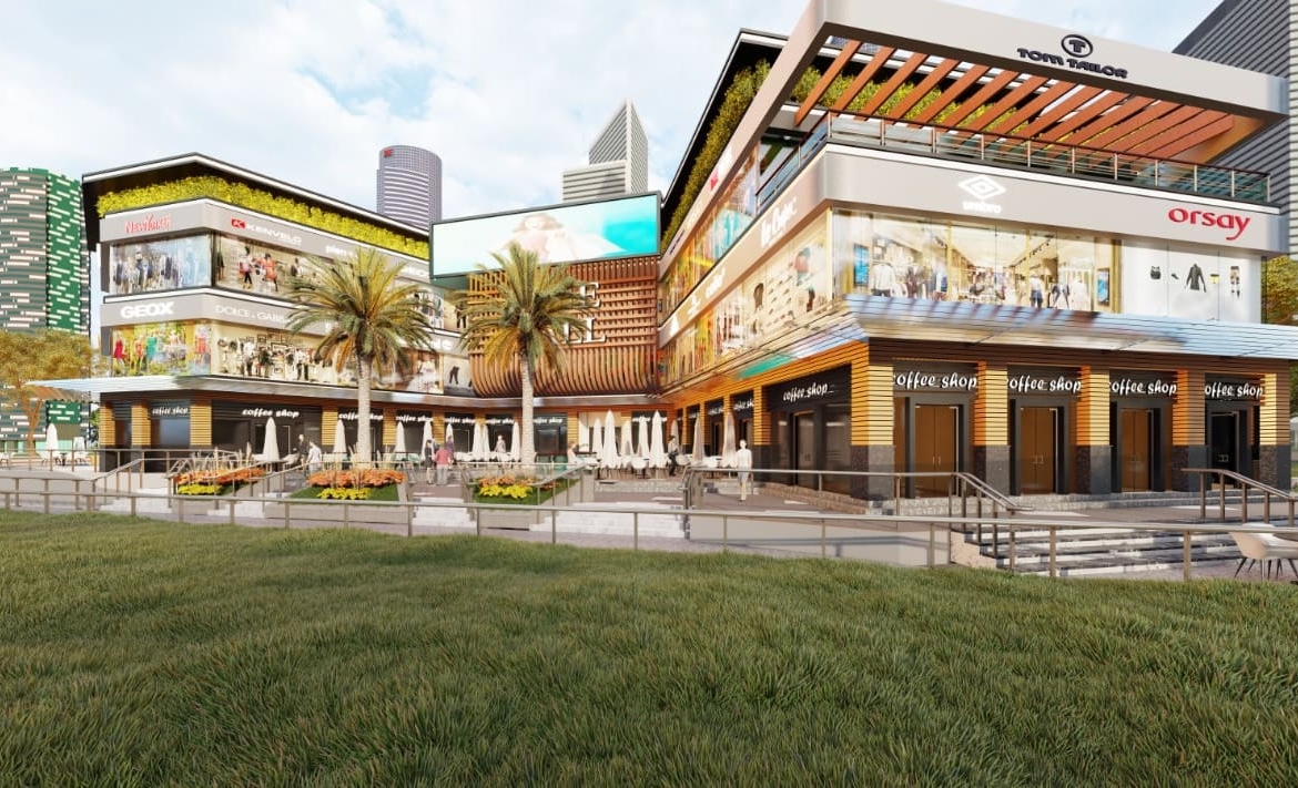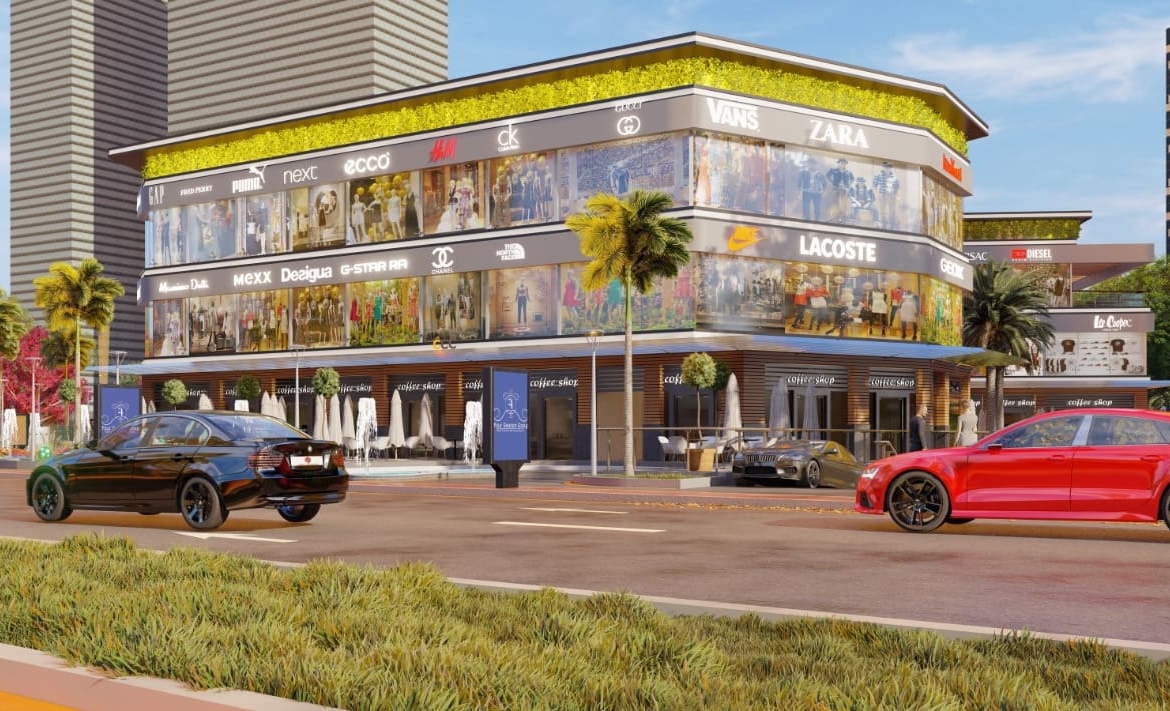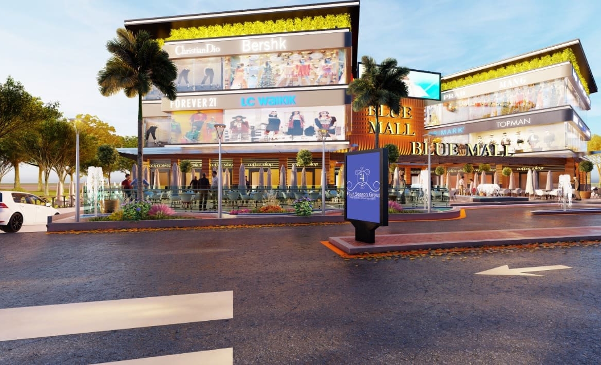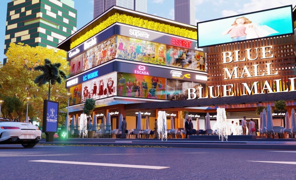 Blue Mall is located in the heart of the residential area R7, which is the largest residential area in the administrative capital, as it contains a large group of residential compounds and universities (the British University, the Russian Community, and the Swedish University).